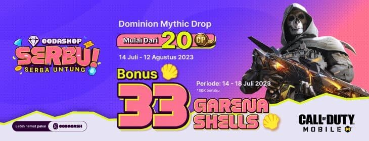 SERBa Untung di Codashop SERBU Juli, top up Revelation Mobile di Codashop pakai kode promo “CODAREV10” bisa dapetin DISKON s.d. Rp30.000.